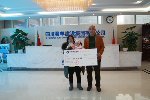 为起劲响应国家“二胎”政策,,银河yh0076实验“生育二胎有奖制”,,对2017年出生的二胎“银河yh0076宝宝”给予奖励。。。。公司员工唐雪松、周健、陈玉三个家庭划分获得奖金人民币贰万元整。。。。